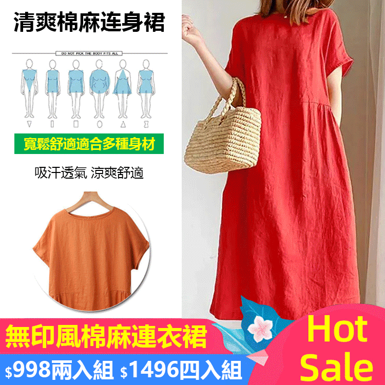 無印風棉麻連衣裙